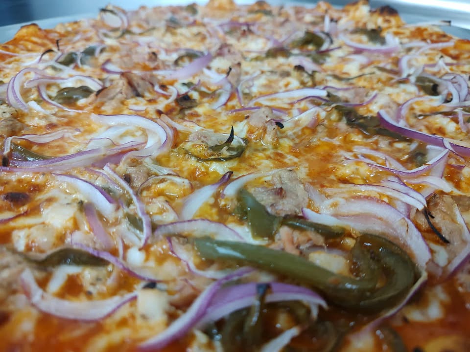 Spiced apricot sauce, mozzarella, peppers, red onion, jerked pork. 12”- $15 14”-$17 16”- $19 18”-$21