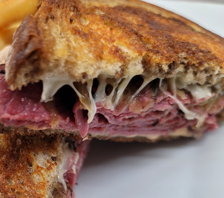 Bacon cheeseburger sandwiched between 2 hashbrown patties, smothered with gravy, served with Beartown mac and cheese. 17